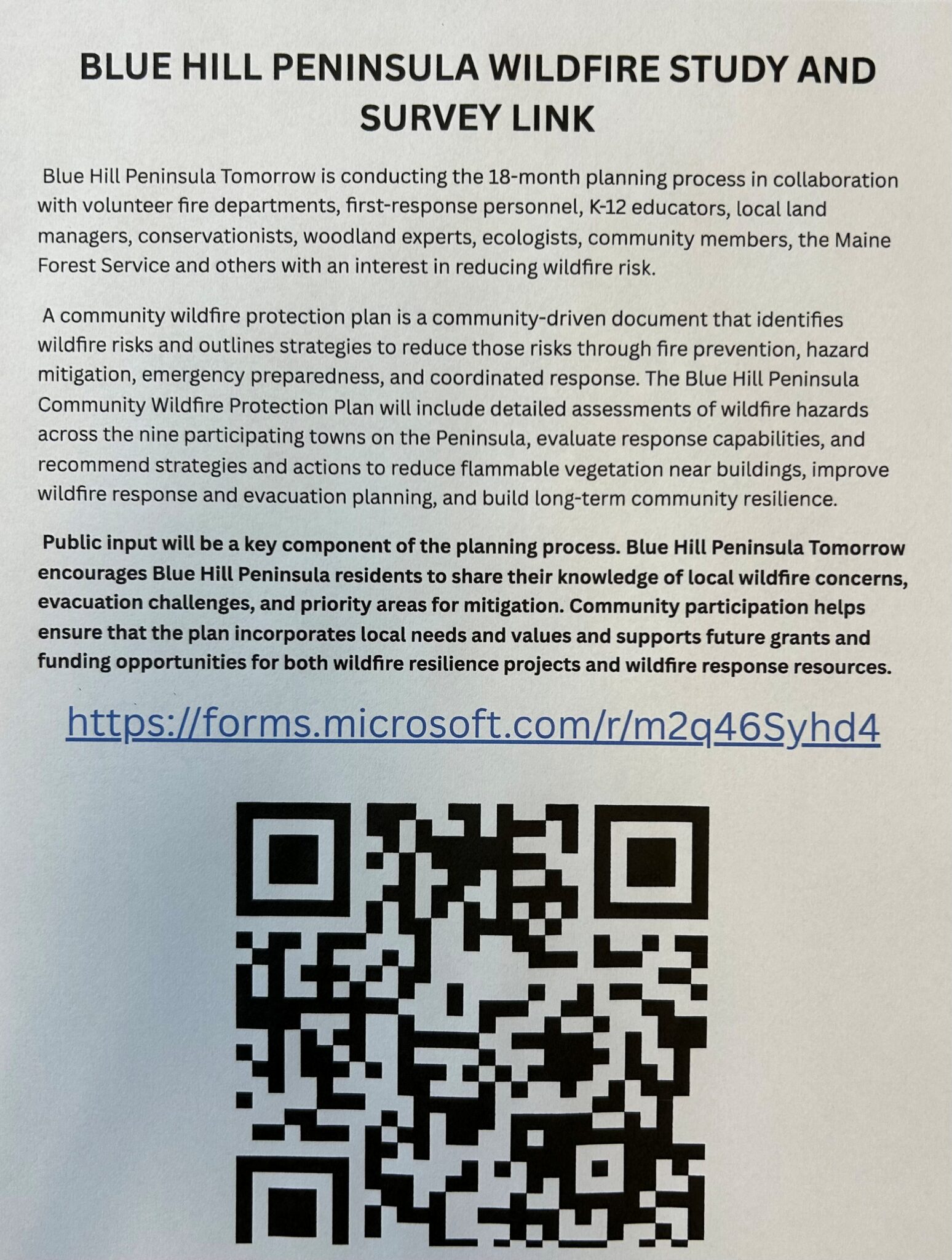 encourages Blue Hill Peninsula residents to share their knowledge of local wildfire concerns,